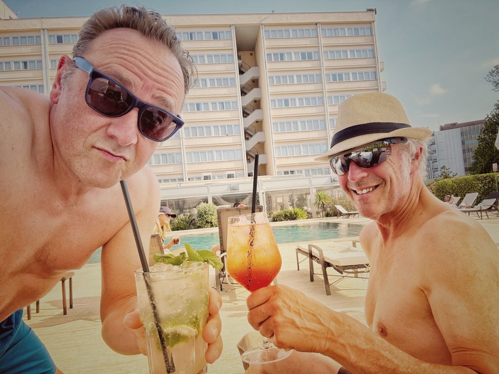 Um einiges besser verläuft die nachfolgende Partie. Das schweizerisch-belgische Duo, gegen das Oak & Tom nun antreten dürfen, hatte immerhin zwei Gewinnsätze gegen die Weltmeister rausgespielt. Im ersten Spiel liegen Krimmel/Rapp sogar vorne, aber verlieren dann den ersten Satz unglücklich zu acht. In der Satzpause stöhnt der Schweizer: „Es ist für uns auch nicht einfach!“ Tom & Oak bezwingen quasi fast den fast-Weltmeister-Bezwinger. 😉Aber das bleibt dann auch die bestmögliche Platzierungsbeschreibung an diesem geschichtsträchtigen Tag. Doch was bleibt, ist die unglaubliche und einzigartige Begegnung mit einem echten Weltmeisterteam. 🤙🏻😎 Ein Gefühl wie ein spritziger Cocktail am Hotelpool.