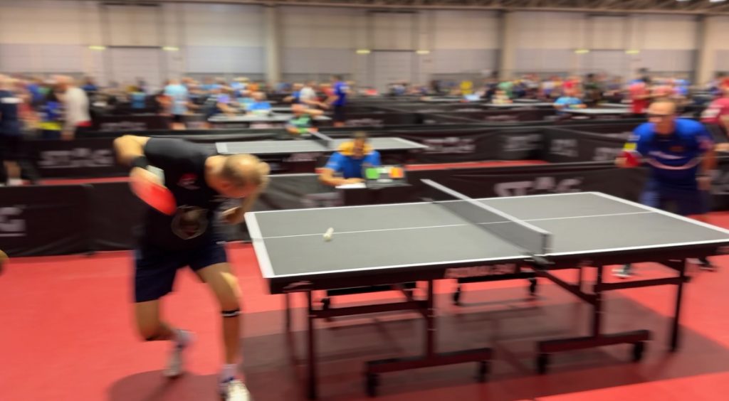 In der nächsten Partie treffen Tom & Oak auf das italo-belgische Team. Hier gäbe es eine reele Chance, zumindest einen Satzgewinn zu erzielen. Schiedsrichter ist der ehrenwerte Weltmeister Søndergaard. Kurz darauf steht es 3:3. Tom & Oak geben alles, was sie haben, aber das ist weniger als erhofft, trotz einer kurzen Führung von 5:4 verlieren sie im ersten Satz 6:11. Im dritten Satz ist es ein aufregendes Kopf-an-Kopf Rennen (10:12), das Italien/Belgien, genau wie im zweiten Satz, für sich entscheiden kann.